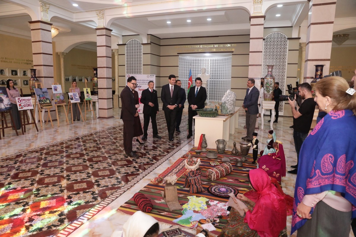 İştirakçılar əvvəlcə Ümummilli Lider Heydər Əliyevin abidəsini ziyarət edərək, onun əziz xatirəsini dərin ehtiramla yad ediblər. Ardınca məktəblilərin hazırladığı əl işlərindən ibarət sərgiyə baxış keçirilib.