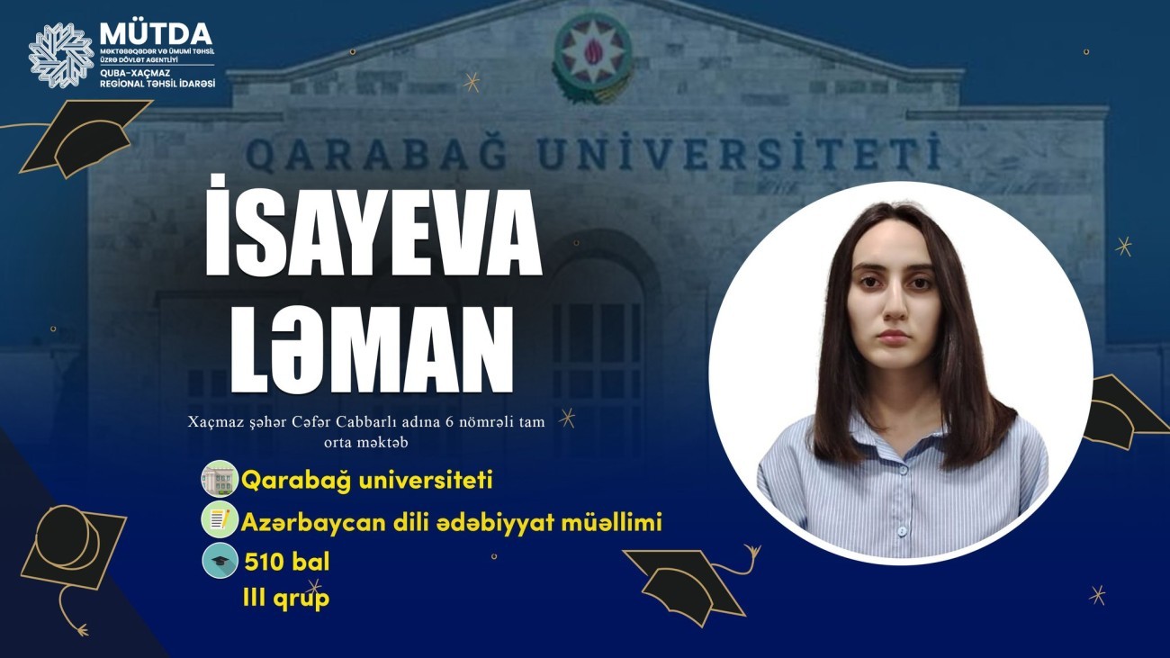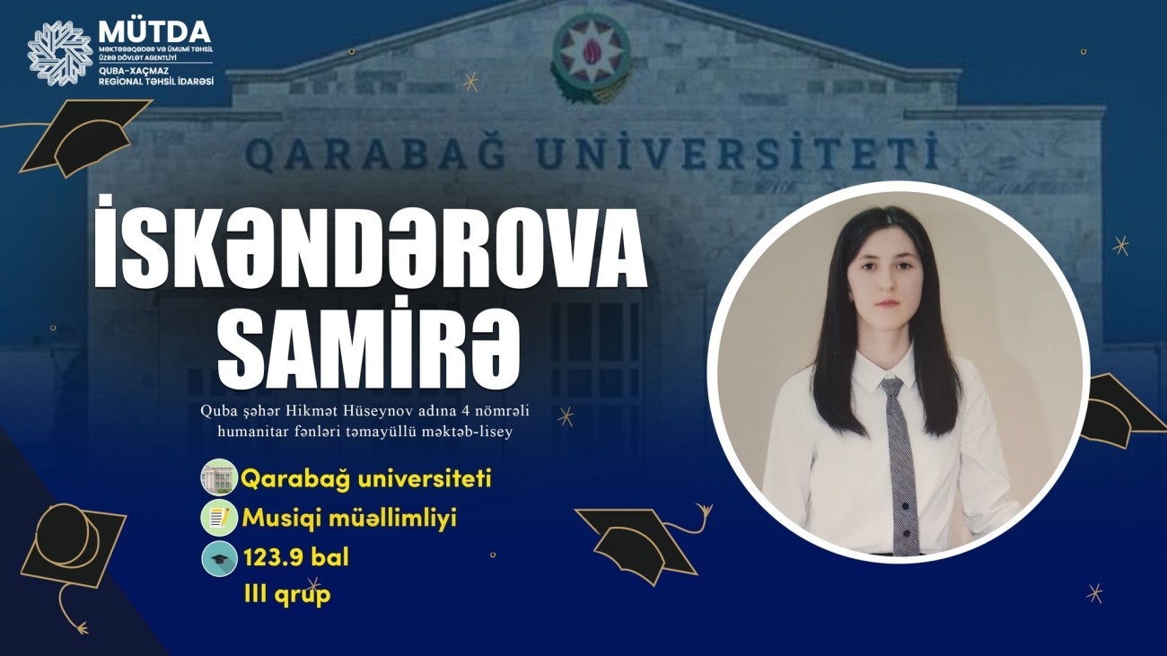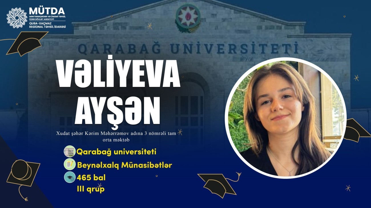 Quba-Xaçmaz Regional Təhsil İdarəsinin tabeliyində fəaliyyət göstərən ümumi təhsil müəssisələrini bitirərək Qarabağ Universitetinə daxil olan ilk məzunlarımız.